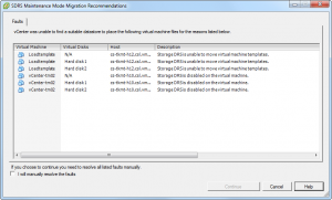 Please note that Storage DRS cannot move VM templates via storage vMotion. This can impact load balancing operations or datastore maintenance mode operations. When initiating Datastore Maintenance mode, the following message is displayed: