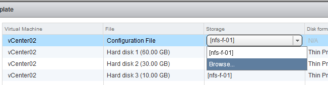 These steps have to be repeated for every hard disk of the virtual machine. At this point the working directory (configuration file) and the System disk will be placed on Datastore Cluster Tier 2 and the Database disk and Log file disk will be placed on Datastore Cluster Tier 1 once the deployment process has completed.