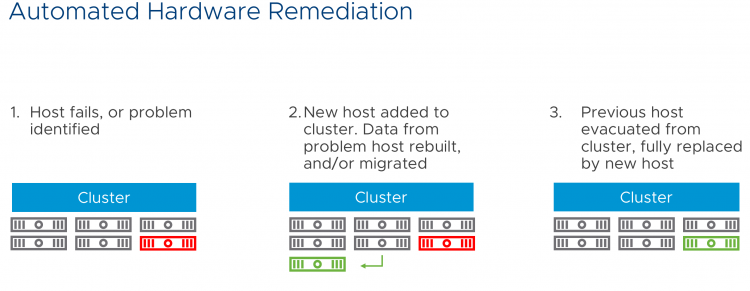 If you select a multi-host deployment, by default an SDDC cluster contains 4 hosts, that means that VMC deploys four physical hosts (for more info: Dedicated Hardware in a Public Cloud World) on the AWS infrastructure. It installs and configures vSphere, vSAN, and NSX for you automatically. After roughly two hours you are the sole-owner of dedicated hardware with a fully software-defined data center running on top of that. Just log into your in-cloud vCenter and start to deploy your workload. So to reiterate, you just clicked a button on a website and a fully functional data center is deployed for you. https://twitter.com/kenhuiny/status/1019995175735758848 Ok so what about day 2 operations, let’s define this a bit clearer because there are multiple definitions available. Dzone provides the following definition: Once “something” goes into operations, “day 2 operations” is the remaining time period until this “something” isn’t killed or replaced with “something else.” We build a cloud management platform in AWS in order to deal with day-2 operations. VMware provides the service, we will keep the lights on for you, troubleshoot and maintain your environment. This CMP plaform allows us to provide services like automated hardware remediation. If a component inside the ESXi hosts fails, such as a NIC, or an NVMe device, the backend will detect this and it will initiate a process to replace the faulty host with a fully operational one. The customer won’t have to do a thing.