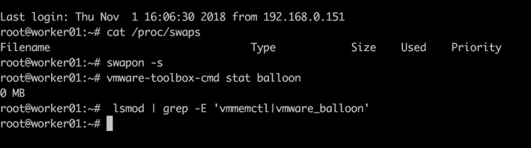 The interesting part is the dependencies of guest OS native memory management techniques. As a requirement, the swap file inside the guest OS needs to be set to disabled when you install Kubernetes. Otherwise, the kubelet won’t start. The swap file is the main reason why the balloon driver is so non-intrusive. It allows the guest OS to select memory page it deems fit. Typically these are idle pages and thus the working set of the application is not affected. What happens if the swap file is disabled. Is the balloon driver disabled? The answer is no.