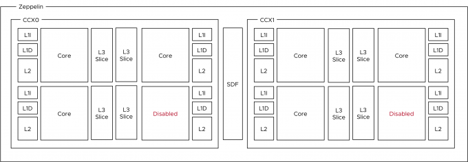 Zeppelin CCX Layout of 32 Core EPYC