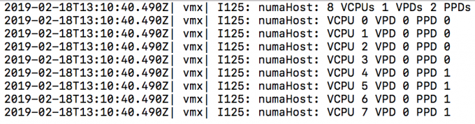 Now the performance and the behavior of the application depends on its design. If you have a single-threaded application, this setting might not be helpful at all. However, if it’s a multi-threaded application, you might see some benefit. The only thing to do is to set the numa.vcpu.min equal to the number of vCPUs per virtual NUMA client to expose the vNUMA architecture to the guest OS and the application. The following command helps you to retrieve the NUMA configuration of the VM:
