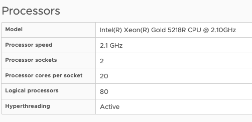But, a Cores per Socket setting other than Cores per Socket =1 will impact the distribution of vCPUs of that virtual machine across the physical NUMA nodes. As the Cores per Socket act as a mini affinity rule-set. That means that the NUMA schedule has to distribute the vCPUs of the virtual machine across the NUMA nodes with Cores per Settings still in mind, not as drastically as before, where it also exposed it to the guest OS. Still, it will impact overall balance if you start to do weird things. Let me show you some examples. Let’s start by using a typical example of Windows 2019. In my lab, I have a dual-socket Xeon system with each 20 cores, so I’m forced to equip the example VMs with more than 20 vCPUs to show you the effect of Cores per Socket on vNUMA.