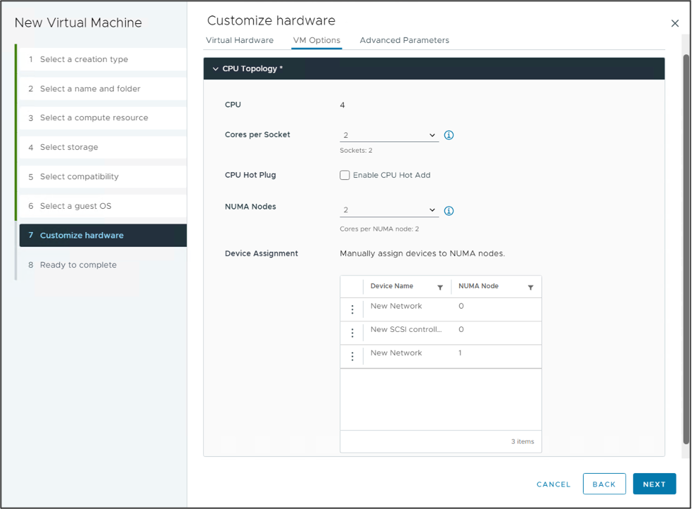 The device assignment functionality in the new vSphere 8 UI of the vNUMA Topology helps VI-admins and MLOPs teams assign the vCPU and GPU of a VM to the same NUMA node. This feature improves the possibility that the memory of the VM remains the same NUMA node as the GPU. I wrote an extensive article about this in January 2020, “Machine Learning Workload and GPGPU NUMA Node Locality.” The idea of the script is now codified correctly in the official product, a personal highlight to see for me.