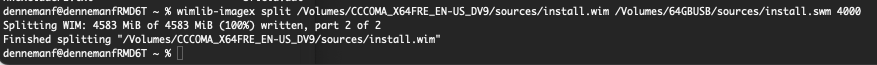 wimlib-imagex split /Volumes/CCCOMA_X64FRE_EN-US_DV9/sources/install.wim /Volumes/64GBUSB/sources/install.swm 4000