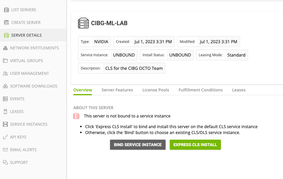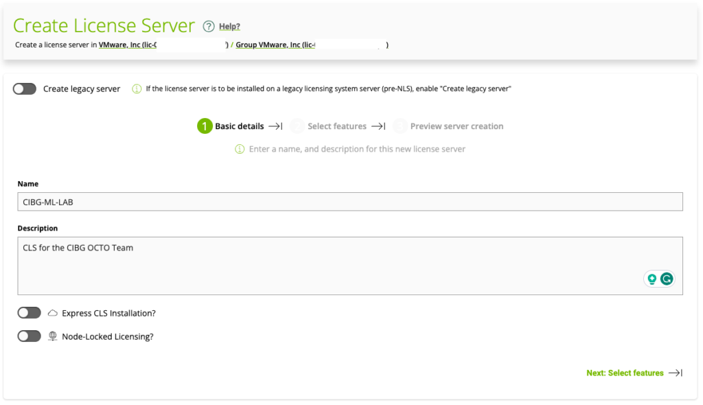 Ensure “Create legacy server” is disabled (slide to the left) and provide a name and description for your CLS. Click on “Select features”. The node-locked functionality allows air-gapped client systems to obtain a node-locked vGPU software license from a file installed locally on the client system. The express CLS installation.