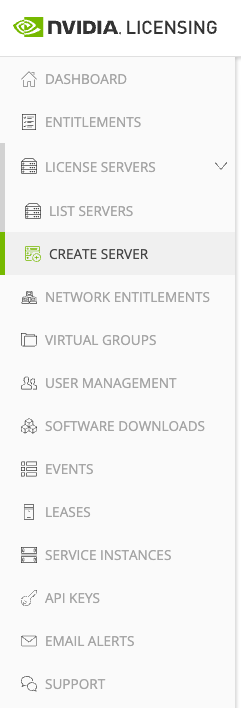 Expand “License Server” in the menu on the left of your screen and select “create server”