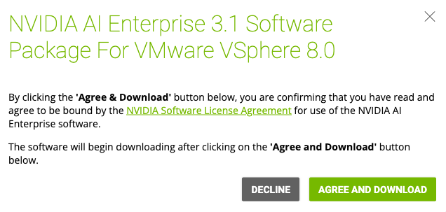 Since I’m running vSphere 8.0 update 1, I’m selecting NVAIE 3.1 for vSphere 8.